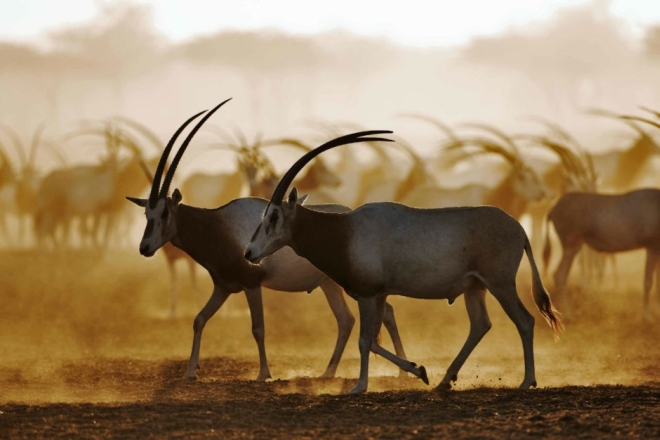 Linh dương sừng thẳng Ả Rập: Là giống linh dương Ả Rập lớn nhất, chúng từng sinh sống khắp bán đảo này, nhưng đã tuyệt chủng trong hoang dã vào thập niên 1960. Tuy nhiên, nhờ chương trình tái nhập, hiện nay Abu Dhabi đã có các đàn linh dương ở nhiều khu vực. Nơi lý tưởng để ngắm nhìn loài vật tuyệt đẹp này là đảo Sir Bani Yas.