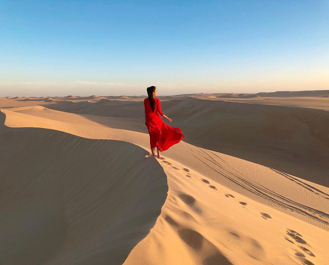 "Mình thật sự sẽ không bao giờ quên được khoảnh khắc đắm mình trong hoàng hôn đỏ thẫm trên sa mạc Sahara, cắm trại dưới bầu trời đầy sao và thức dậy nhìn ngắm bình minh vàng ươm trải dài khắp vùng sa mạc rộng lớn. Hoặc những ngày xuôi mình trên dòng sông Nile nữa, đi đến đâu cũng đều phải kinh ngạc vì những vẻ đẹp tráng lệ, trường tồn. Nếu để kể hết những câu chuyện trong chuyến đi Ai Cập thì chắc phải mất ngàn lẻ một đêm… mất." - Thuỳ Dương bồi hồi nhớ lại.