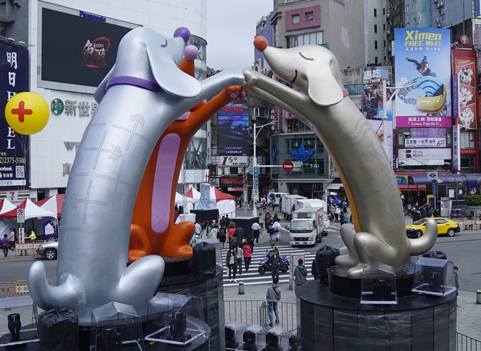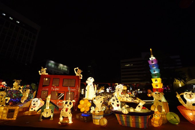 Du xuân xứ Đài sau Tết Nguyên đán, bạn sẽ có cơ hội chiêm ngưỡng những chiếc đèn lồng công phu trong những lễ hội được tổ chức nhiều nơi ở Đài Bắc. Chương trình bắt đầu từ ngày 12/2, với biểu tượng là 3 chú chó cao khoảng 10 m nắm tay nhau tạo thành hình tròn được dựng ngay trung tâm khu mua sắm nổi tiếng nhất DAI_LOAN Ximending (Tây Môn Đinh).