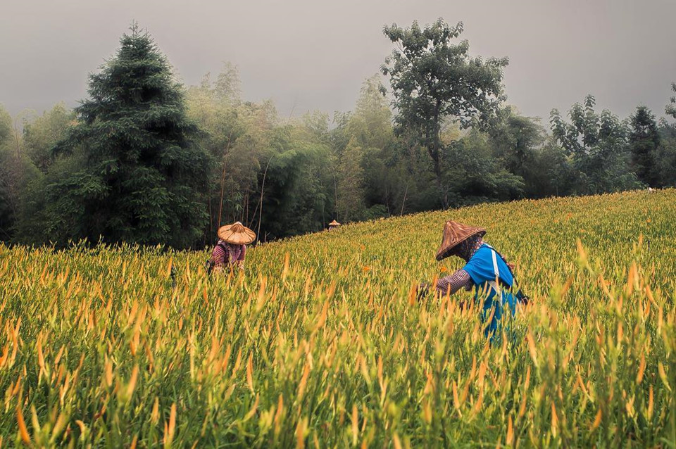 Sau vụ thu hoạch, người ta phơi hoa kim châm ở khắp nơi, từ sân vườn đến nóc nhà. Các món ăn chế biến từ hoa có chứa protein và chất sắt cũng như hàm lượng dinh dưỡng khá cao. Bạn sẽ có cơ hội thưởng thức một bát canh gà nấu với hoa kim châm, sau đó leo lên một trong những chòi canh với tạo hình độc đáo để ngắm nhìn cánh đồng hoa rực rỡ và thảnh thơi tận hưởng kỳ nghỉ. Ảnh: @taiwan_view829.