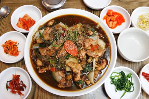 Jjim dalk với thịt gà được hầm khá kỹ cùng các loại rau củ cho hương vị đậm đà, làm hài lòng bất cứ thực khách nào.