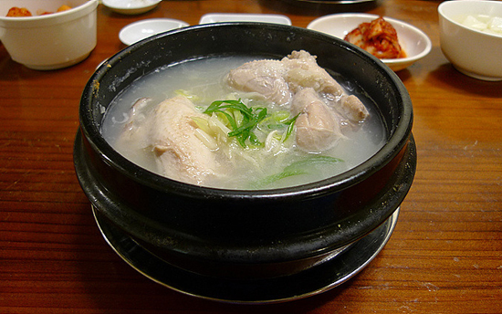 Sam-gye-tang là gà hầm sâm. Đây là món ăn bổ dưỡng, được ăn nhiều vào mùa hè vì người Hàn Quốc áp dụng quy tắc “lấy nhiệt trị nhiệt”, ăn đồ nóng để toát mồ hôi, theo đó giảm bớt nhiệt trong cơ thể. Tuy bổ dưỡng nhưng sam-gye-tang lại hơi khó ăn với nhiều người bởi hương vị nhạt cùng mùi sâm nồng. Dù vậy, do sam-gye-tang thường không dùng gà công nghiệp để chế biến nên nếu chỉ xét đến thịt gà, món này sẽ ngon hơn các món gà khác của Hàn Quốc.