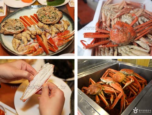 Daege-jjim: Về cơ bản, cua hoàng đế được hấp lên. Sau đó được cắt thành các miếng nhó vừa tay. Thông thường, cơm được trộn trong mai cua với thê gọi “cua bơ”. Có nhiều các con phố với các nhà hàng vua hoàng đế tại Uljin và Yeongdeok tại Gyeongsangbuk-do như làng Cua Yeongdeok. Các nhà hàng cua hoàng đế cũng có mặt tại những con phố mua bán sầm uất tại các thành phố lớn như Seoul và Incheon.