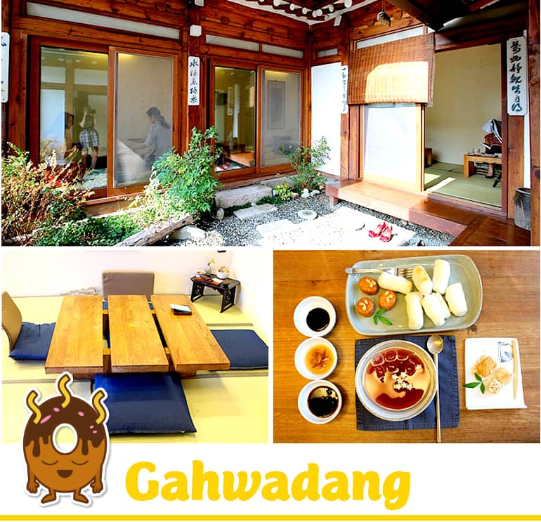 Với ý nghĩa là "một ngôi nhà với một hình ảnh đẹp," Gahwadang là một quán trà truyền thống Hàn Quốc nằm trong một con hẻm yên tĩnh trên Đường Samcheongdong-gil. Từ giây phút bạn bước vào bên trong thông qua lối vào cầu thang, bạn sẽ được chào đón với cảm giác truyền thống của Gahwadang nhờ mái ngói cổ điển và những chậu đất nung của nơi đây.