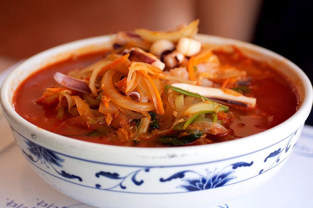 Khi ăn món jjambbong hay mì hải sản, du khách được dặn ăn mì trước, sau đó hãy húp nước dùng làm từ 4 loại ớt cay khác nhau của Hàn Quốc, Trung Quốc, Việt Nam và Ấn Độ. Sau khi thử nước dùng, mỗi miếng mì ăn sẽ khiến bạn có cảm như ăn than nóng đỏ.