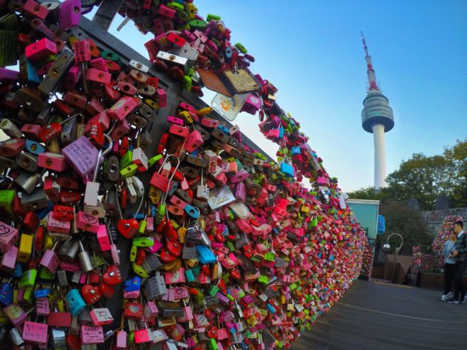 5. Tháp Seoul: Hay còn gọi là tháp Namsan, đây là một trong những nơi tuyệt nhất Seoul để ngắm toàn cảnh thành phố. Tháp Seoul hấp dẫn du khách đến để tham quan, vui chơi với nhà hàng, cửa hiệu, bảo tàng. Một điểm nổi bật khác dưới chân tháp là khu vực Khóa Tình yêu, nơi treo hàng nghìn chiếc khóa biểu trưng cho tình yêu đôi lứa. Dù bạn có muốn tự tay bấm một ổ khóa để lại nơi này hay không, bạn cũng nên ghé qua để chụp vài tấm ảnh kỷ niệm đặc sắc. Ảnh: Asiaawesometravel.