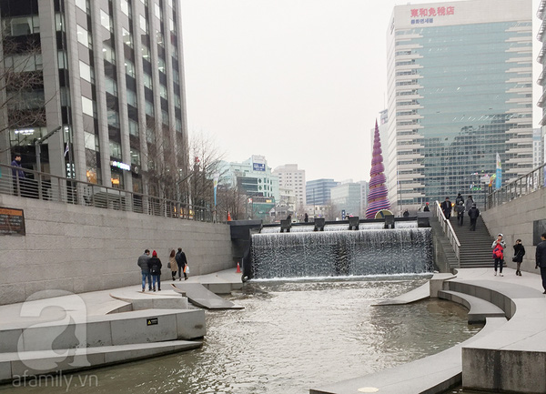 Xong việc mình đi tìm ga tàu để đi đến Shinsegae Department Store để mua đồng hồ, mỹ phẩm... Buổi chiều, bọn mình qua khu Young Avenue lượn lờ ăn vặt rồi chui xuống lòng suối Cheonggye chụp ảnh, quăng đồng xu ước nguyện rồi đi ngược theo con suối đến khu Dongdaemun đi dạo, shopping.