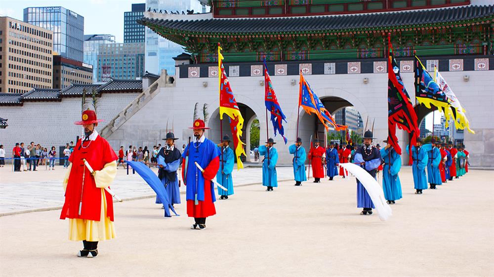 Cung điện Gyeongbokgung cũng là điểm đến không thể bỏ qua khi đến Seoul của đa số du khách. Khi đến đây, đa phần du khách đều muốn được chứng kiến lễ đổi gác ở đây. Thường việc đổi gác sẽ diễn ra mỗi tiếng một lần từ 10 giờ sáng đến 16 giờ chiều hàng ngày, trừ thứ ba.