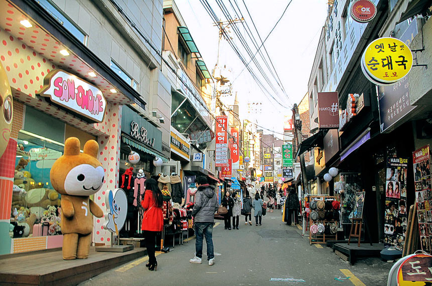 Các khu vực gần Trường đại học Nữ sinh Ewha còn được gọi là Edae là một thiên đường cho người nghiện mua sắm. Ở đây bạn có thể mua quần áo, mỹ phẩm, giày dép và khi bạn cảm thấy mệt, hãy nghỉ ngơi tại một trong rất nhiều những quán cà phê xung quanh.