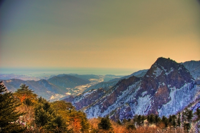 Du khách sẽ hoàn toàn bị mê hoặc khi phóng tầm mắt từ đỉnh Daecheongbong (cao 1.780 m) để chiêm ngưỡng không gian bao la, mênh mang của đất trời giữa vùng núi hùng vĩ đan xen rừng cây lá vàng, lá đỏ trải dài bất tận.