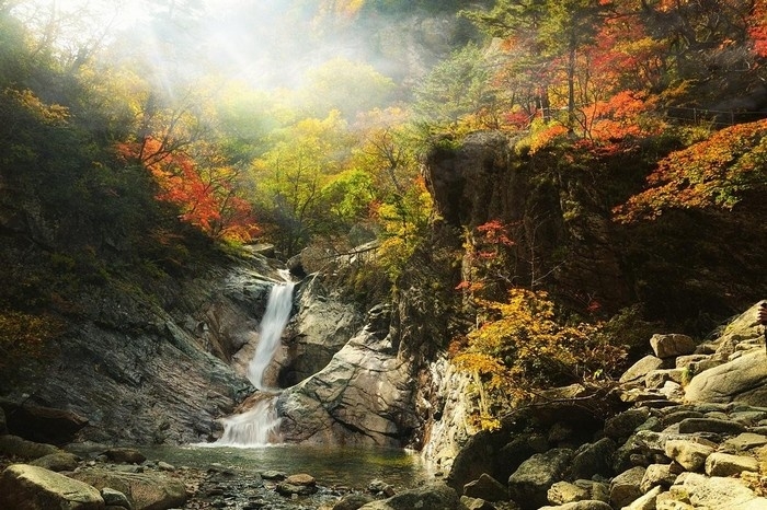 Hàng năm, từ khoảng cuối tháng 9 đến đầu tháng 10, du khách trên khắp thế giới về đây để chiêm ngưỡng vẻ đẹp mê hoặc của những rặng núi đá, thung lũng, thác nước tại công viên quốc gia Seoraksan. Nhưng điều hấp dẫn hơn cả là sự thay đổi kỳ diệu của thiên nhiên, khi cả đất trời được vẽ lên bởi những gam màu tươi sáng như: vàng, đỏ, xanh, trắng, da cam.