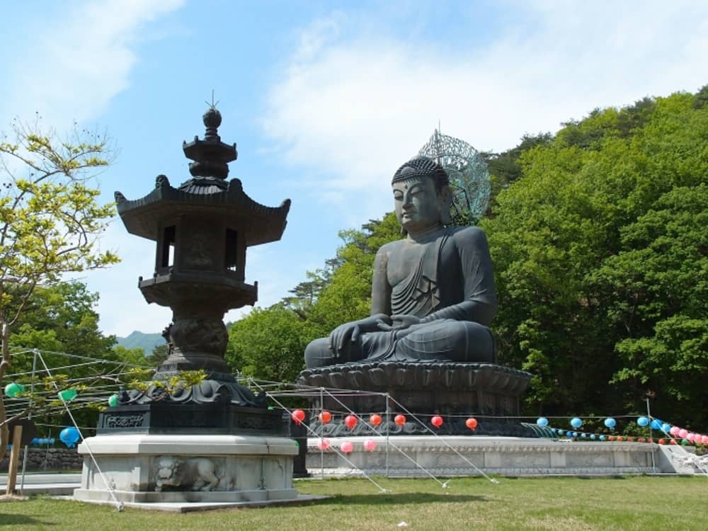 Sau khoảng thời gian ngồi cáp treo và thưởng ngoạn khung cảnh đẹp ngỡ ngàng của núi Seorak, du khách còn được đến với ngôi đền Sinheungsa - nơi lưu giữ nhiều di sản quý báu như chùa đá hay tượng Phật Tingil Deabulsang cao tới 14,6 m và nặng 108 tấn.