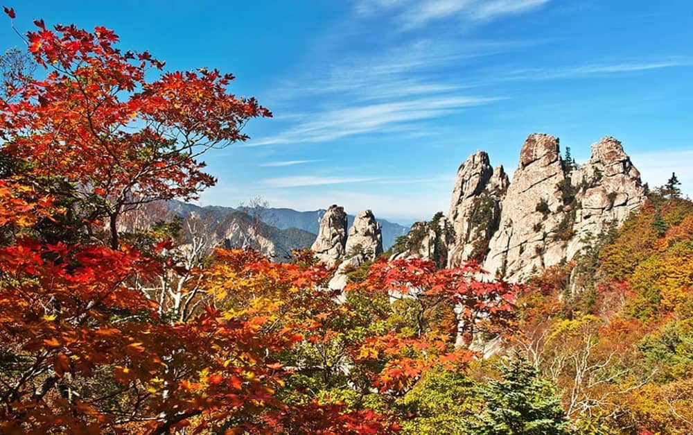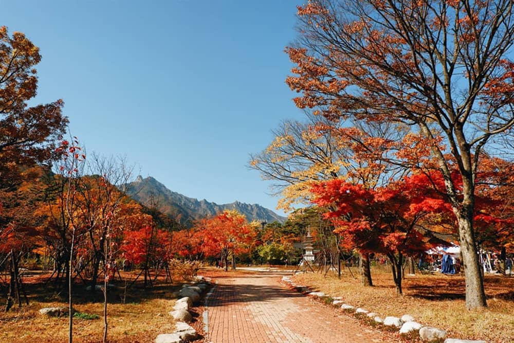 Được bao quanh bởi những đỉnh núi hùng vĩ, hình thành nên các phiến đá đặc biệt cùng thung lũng trải dài, Seoraksan đẹp quanh năm. Nhưng phải đến những tháng mùa thu, nơi đây mới khiến du khách phải ngỡ ngàng bởi một màu đỏ và vàng thẫm của lá phong bao phủ dọc các con đường…