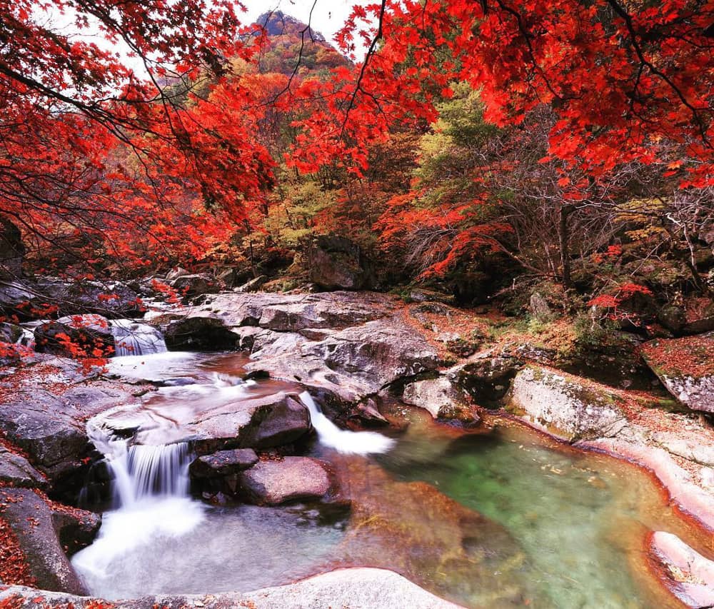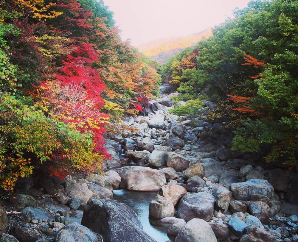 Chỉ cách Busan khoảng hai giờ đồng hồ lái xe, du khách có thể trải nghiệm chuyến đi ngắn trong ngày cùng gia đình và bạn bè. Ở công viên Jirisan có thung lũng Baemsagol dài 9 km, nơi tuyệt vời nhất để ngắm cảnh sắc mùa thu, bên dòng suối chảy tí tách xen lẫn vài tảng đá nhỏ tạo nên một bức tranh thiên nhiên khó nơi nào có được.