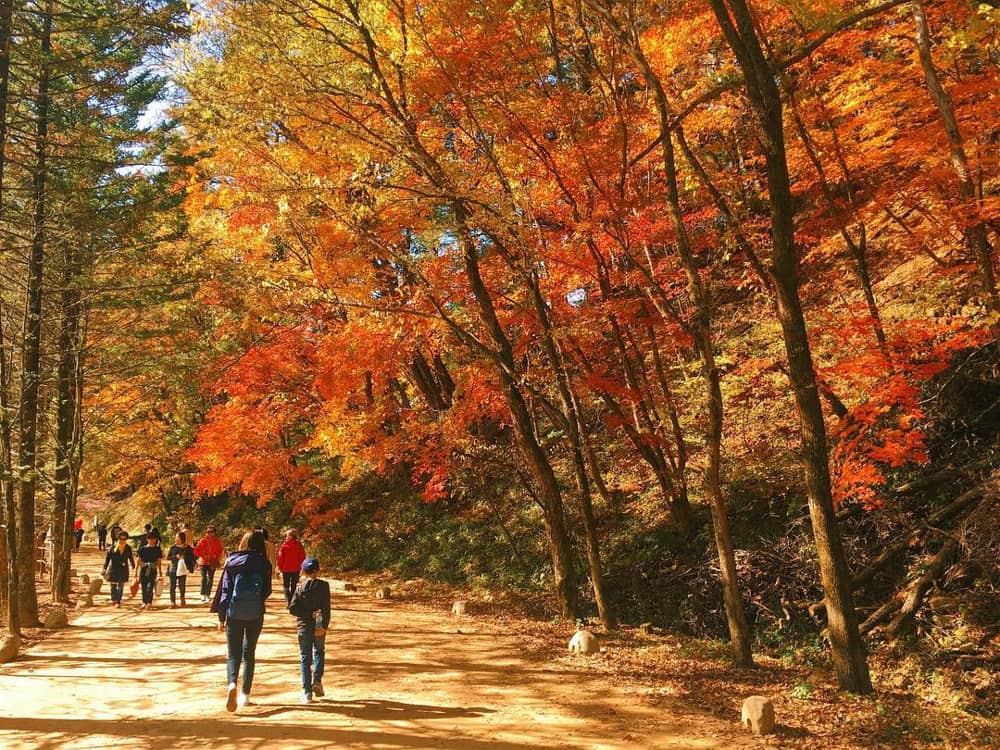 Công viên Quốc gia Naejangsan: Công viên Naejangsan là một trong những địa điểm ngắm lá thu phổ biến của người dân Hàn Quốc và du khách. Nơi đây nổi tiếng với những tán lá đỏ thắm sống động, cây hạt dẻ 600 năm tuổi và thác nước hùng vĩ.