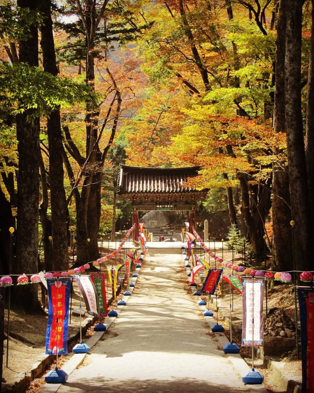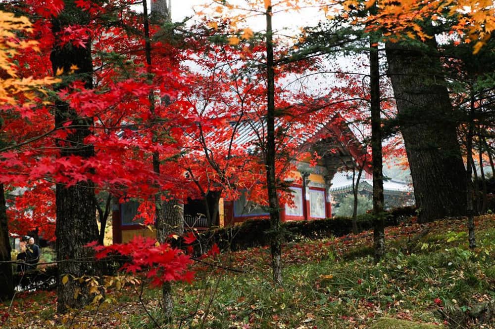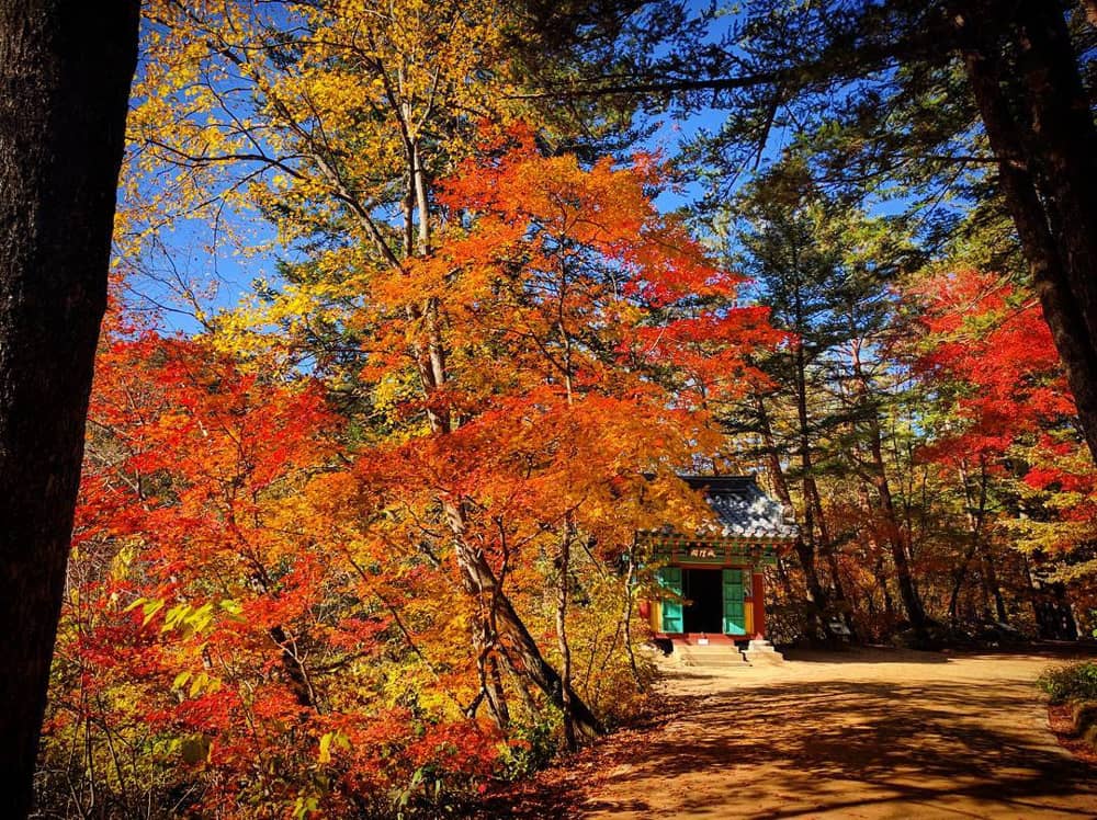 Nằm ở thung lũng phía đông núi Odaesan là đền thờ Phật giáo Woljeongsa, được thành lập từ năm 643. Đây chính là vị trí đẹp nhất để bạn lưu giữ những bức hình ngắm lá vàng tại công viên này.