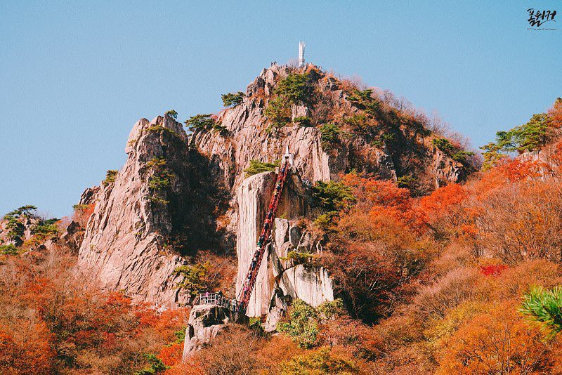 Công viên Quốc gia Seoraksan: Nằm ở Sokcho, Gangwon-do (phía đông bắc Hàn Quốc), công viên Quốc gia Seoraksan là nơi có ngọn núi cao thứ ba Hàn Quốc. Đây sẽ là địa điểm đầu tiên có thể nhìn thấy những tán lá của mùa thu.