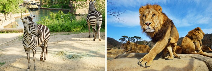Điểm thu hút chú ý đặc biệt của Everland chính là hổ trắng và sư tử trắng, đây là hai loài động vật quý hiếm không dễ thấy ở các vườn thú khác. Điểm hấp dẫn khác của Thế giới động vật hoang dã chính là những chú gấu nâu. Nhưng con vật đáng yêu này sẽ phô diễn tài năng để xin đồ ăn mỗi khi xe buýt đi qua.
