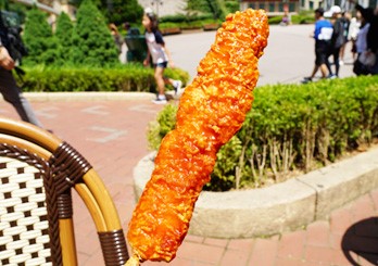Một món ăn vặt ngon miệng khác của Everland là món gà xiên được phủ hỗn hợp gia vị ngọt ngào và cay nóng rất dễ gây nghiện. Dak kkochi là món ăn vặt hoàn hảo khi bạn cảm thấy hơi đói nhưng chưa muốn ăn bữa chính. Bạn cũng có thể thưởng thức món gà Hàn Quốc nổi tiếng này cùng với bia bằng cách mua một cốc bia cùng với xiên gà.