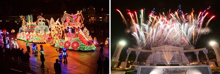 Nếu bỏ lỡ Carnival Fantasy Parade, bạn vẫn có cơ hội thưởng thức các buổi trình diễn và chương trình thú vị khác. Sau khi mặt trời lặn, thì cũng là lúc “phố lên đèn”, bầu trời đêm tràn ngập pháo hoa khổng lồ và những dãy đèn đầy màu sắc trong Cuộc diễu hành Mặt Trăng. Một buổi biểu diễn buổi tối mà bạn không thể bỏ qua là Jukebox: The Musical, một chương trình pháo hoa quy mô lớn diễn ra vào buổi tối.
