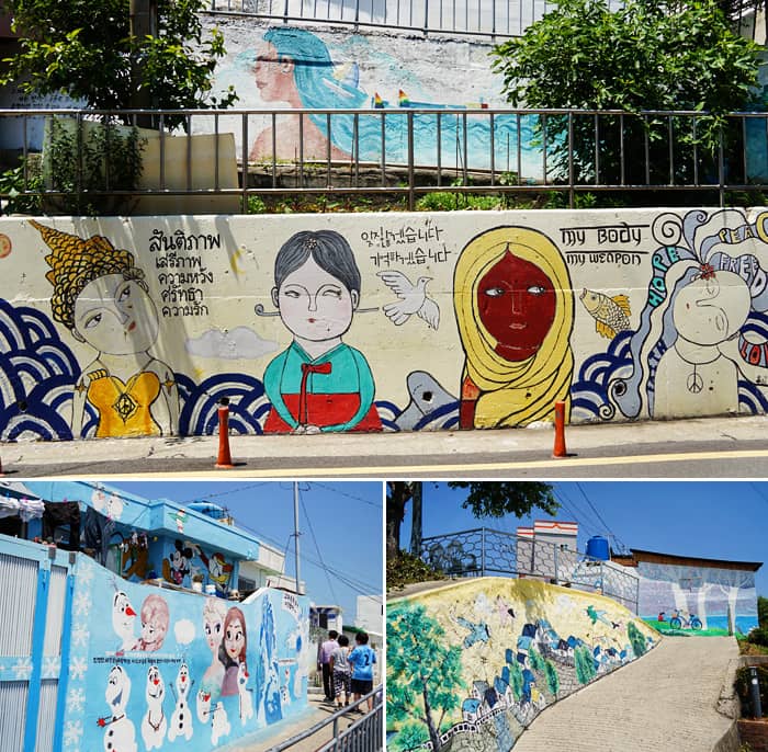 Còn được gọi là vách đá phía đông, Làng Dongpirang tại Tongyeong là nơi nổi tiếng về nghệ thuật tranh bích họa. Du khách có thể nhìn được toàn cảnh Cảng Gangguan, và tìm thấy tranh bích họa được vẽ trên mọi bức tường, những bức tranh này thu hút ánh nhìn ngay cả ở cự ly rất xa. Trước đây chúng đã từng được lên kế hoạch phá bỏ, nhưng cộng đồng địa phương đã hành động và thực hiện dự án phục hồi để sơn vẽ lại các bức tường cùng với hy vọng giúp ngôi làng trở nên hấp dẫn hơn để kêu gọi mọi người chung tay bảo tồn.