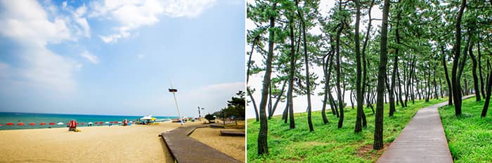 Bãi biển Gyeongpo (trái) / Rừng thông Bãi biển Gyeongpo (phải)