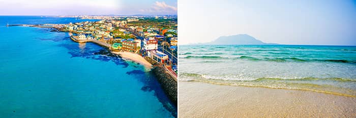 Bãi biển Hyeopjae (trái) /Đảo Biyangdo (phải)