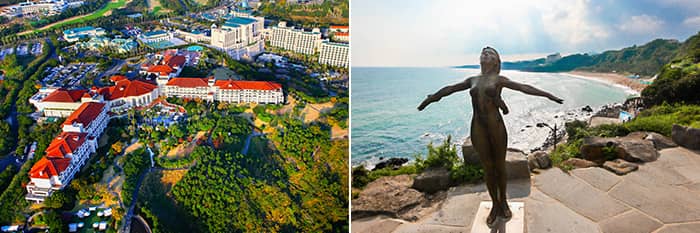 Khu nghỉ dưỡng Jungmun Jeju (trái) / Bãi biển Jungmun (phải)