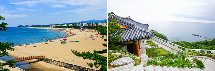 Bãi biển Naksan (trái) / Đền Naksansa (phải)