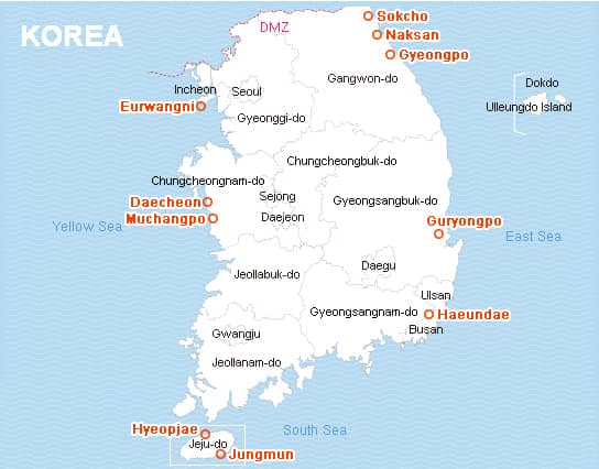 Bản đồ các bãi biển lớn ở Hàn Quốc