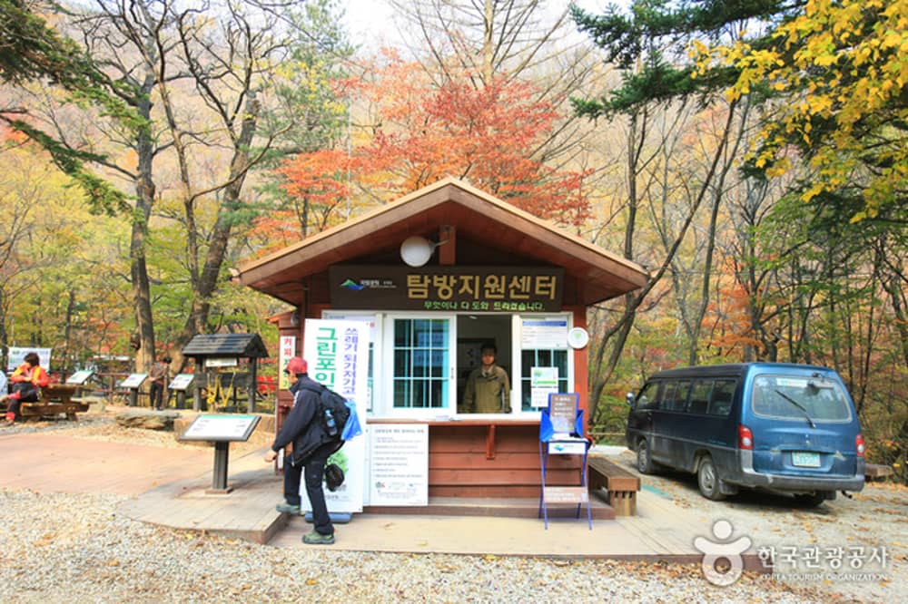 Nơi đây bắt đầu mùa lá đỏ từ cuối tháng 9, thời điểm đẹp nhất vào khoảng ngày 19/10. Vườn quốc gia này nằm ở địa phận của bốn hạt: Sokcho, Inje, Goseong và Yangyang. Đỉnh cao nhất của vườn quốc gia này là Daecheongbong ở độ cao 1.708m, trên đường chinh phục du khách có thể tham quan các đền, chùa, thung lũng hay thác nước đẹp.