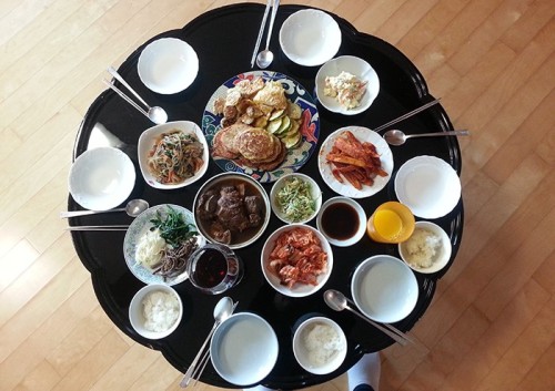 Bàn ăn của người Hàn Quốc luôn có đôi đũa đặt bên phải, chiếc thìa to đặt bên trái.