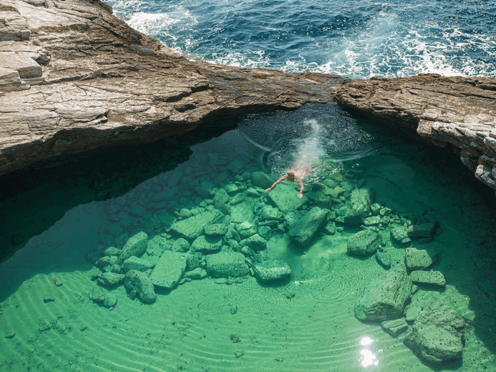Làn nước trong như pha lê ở Giola – một bể bơi đá tự nhiên tuyệt đẹp trên đảo Thassos.