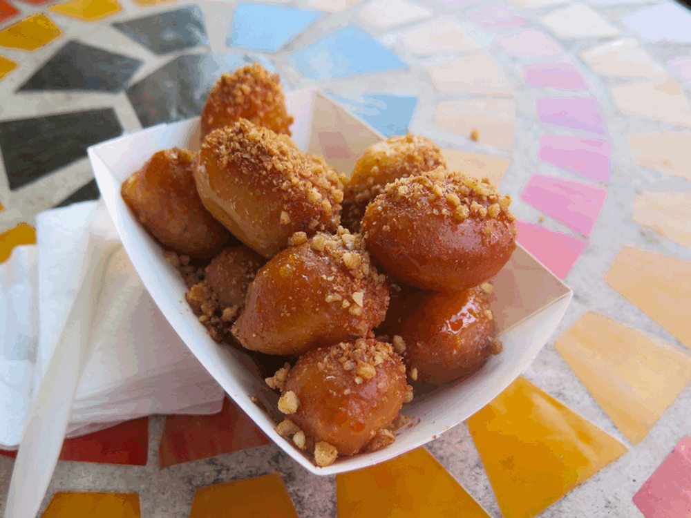 Đến HyLap bạn cũng đừng quên thưởng thức những chiếc bánh Loukhoumades vàng ruộm được tắm đẫm trong mật ong sau đó rắc topping bột quế hoặc quả óc chó nghiền phía trên.