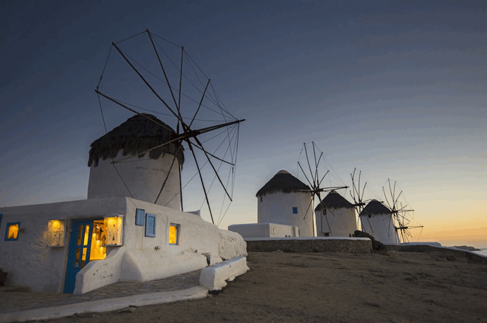 Những cối xoay gió trên đảo Mykonos.