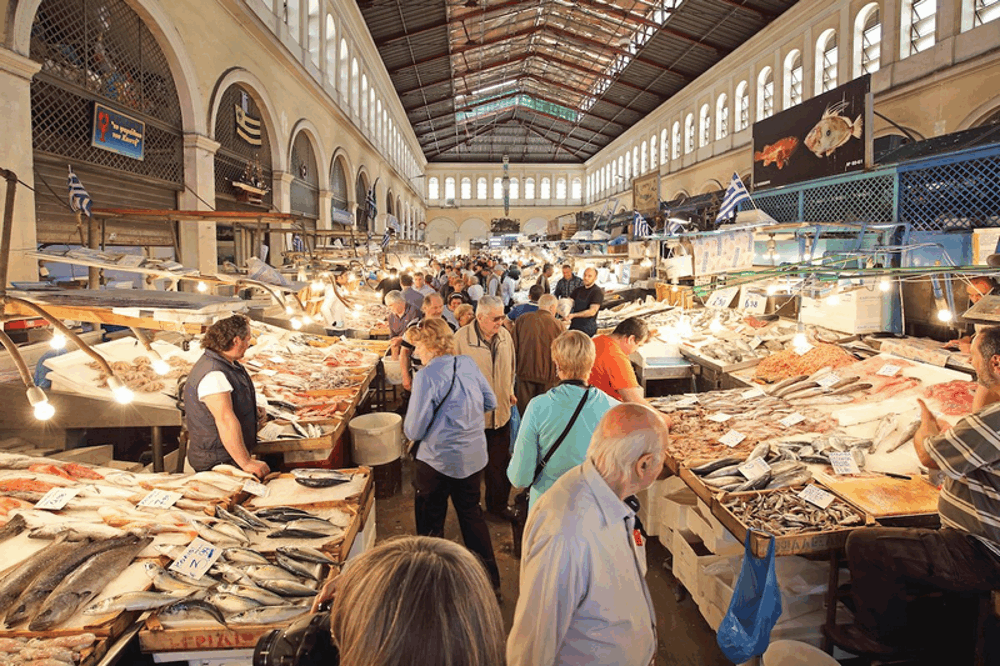 Khung cảnh nhộn nhịp tại một khu chợ trung tâm ở thủ đô Athens.
