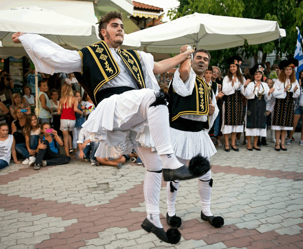 Và xem một buổi biểu diễn khiêu vũ HyLap, giống như chương trình này ở thị trấn Pefkohori.