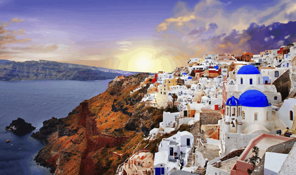Thị trấn Oia trên đảo Santorini đặc biệt nổi tiếng với cảnh hoàng hôn tuyệt đẹp.