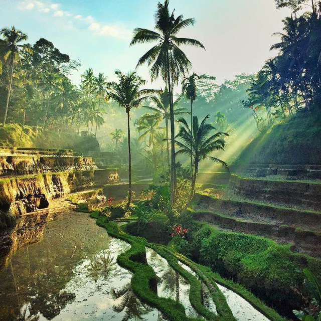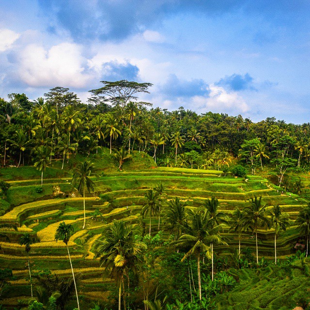Những thửa ruộng bậc thang xen lẫn những cây dừa cao vút dưới bầu trời xanh ngắt là một trong những nơi thu hút khách du lịch đến với Bali.