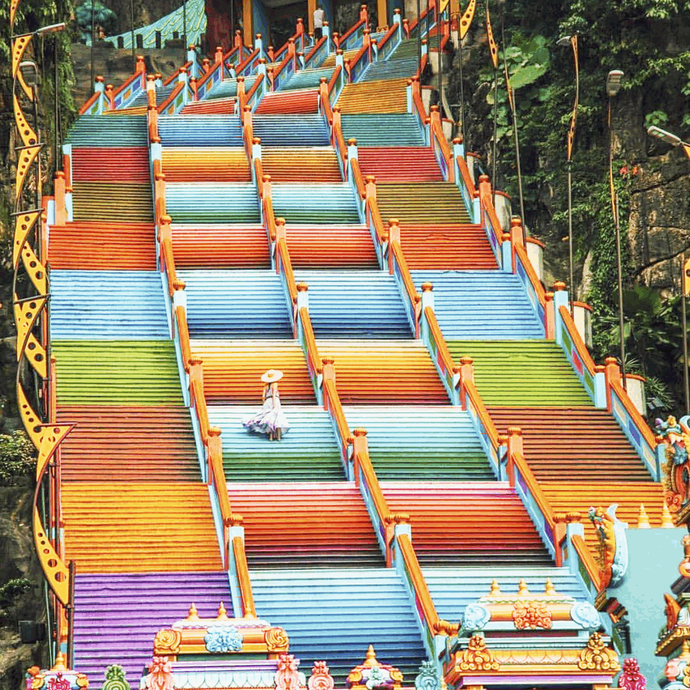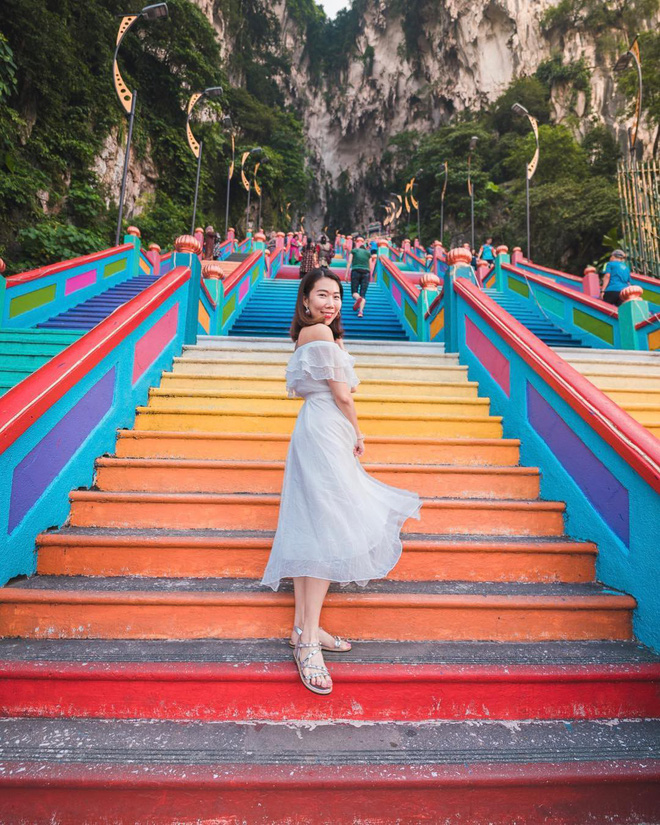 Cầu thang 7 sắc cầu vồng đẹp như thiên đường ở động Batu, Malaysia chính là địa điểm check-in mới được giới trẻ ưa thích (@taramilktea)