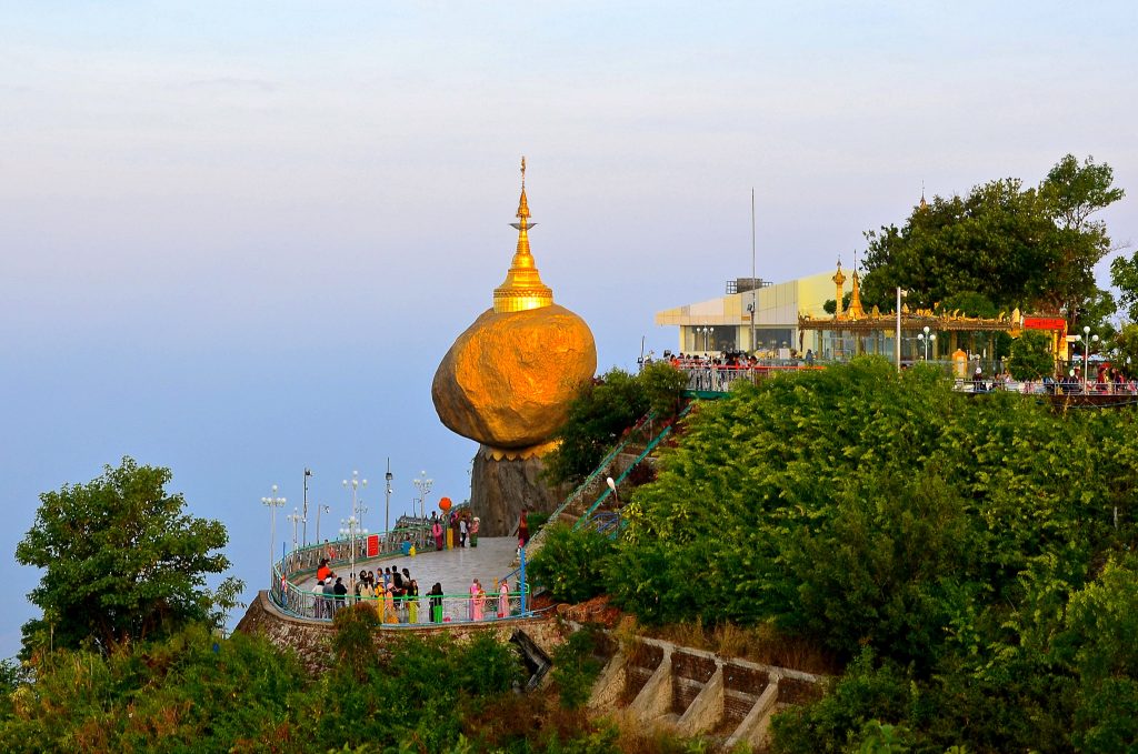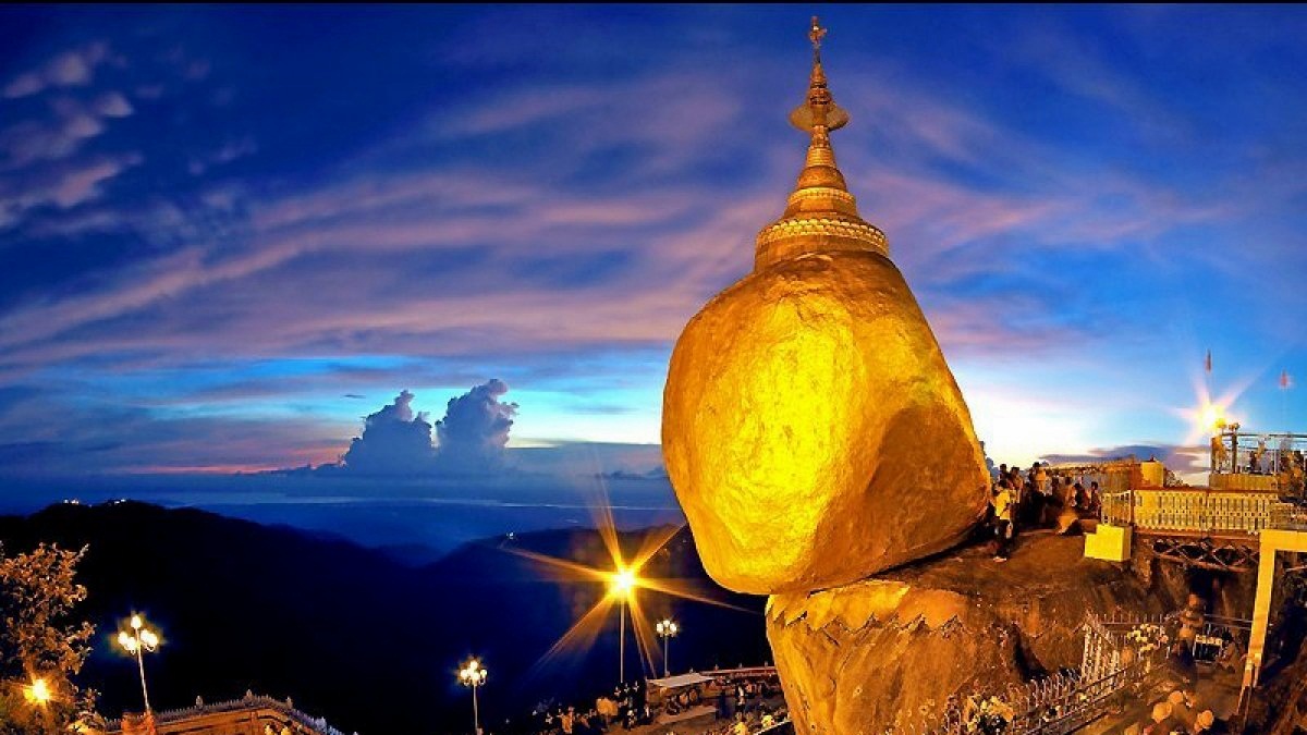 Nằm chênh vênh bên lưng chừng vách núi, ngôi chùa Kyaikhtiyo khiến mọi người choáng ngợp khi tọa lạc trên đỉnh một hòn đá khổng lồ được mạ bằng vàng thật.