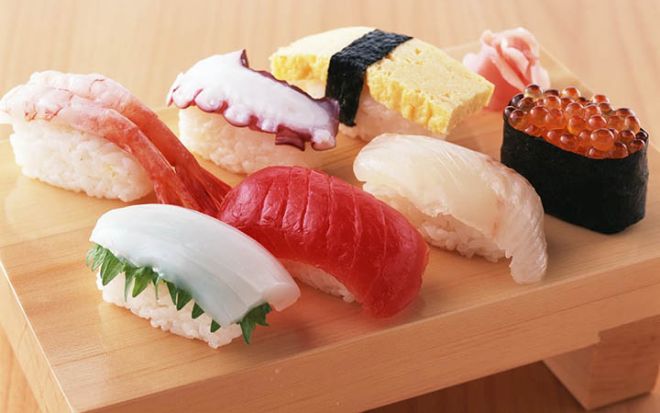 Sushi đơn giản là để chỉ món cá sống ăn cùng với cơm trộn dấm. Thế nhưng, những nghệ nhân Nhật Bản đã biến món ăn vốn dĩ xuất phát từ đường phố này thành cả một nghệ thuật với những biến tấu độc đáo về hương vị và cách trình bày. Bạn có thể nếm món sushi với nhím biển béo ngậy, với cá hồi tươi mềm hay thịt tôm ngọt ngon tuyệt. Có thể nói, sushi là món ăn quốc hồn quốc túy của người Nhật.