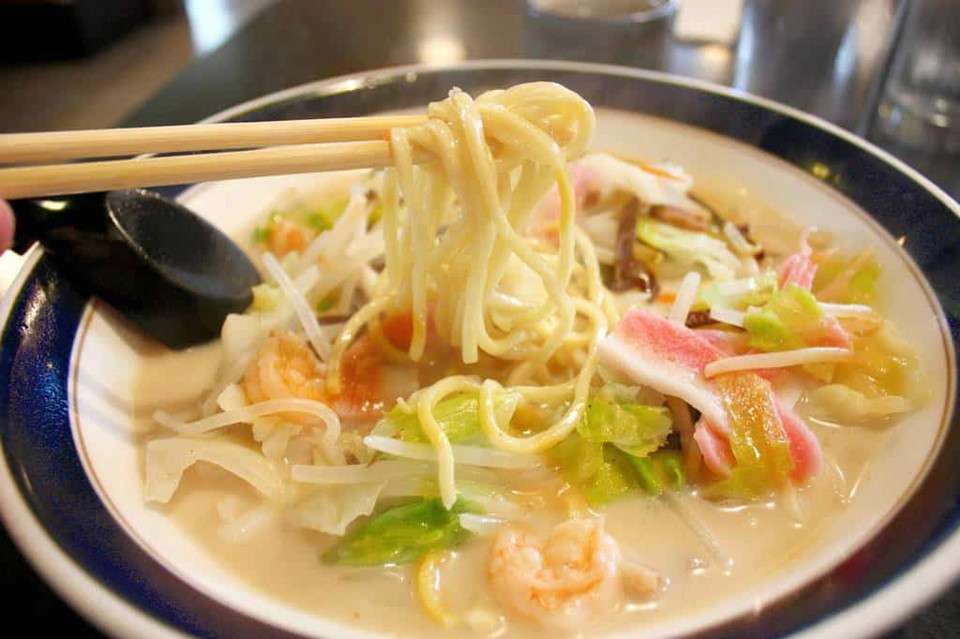 Mì champon: Champon trong tiếng Nhật có nghĩa là “sự pha trộn”, ý chỉ đây là món ăn kết hợp giữa rất nhiều nguyên liệu để nấu thành. Món ăn được nấu trực tiếp trong nồi nước dùng ninh từ thịt gà hoặc xương lợn, kết hợp với nhiều loại rau như giá đỗ, bắp cải, cà rốt cùng các loại hải sản phổ biến như hàu, tôm, chả cá… Chính vì nhiều nguyên liệu như vậy nên mì champon có một hương vị rất đặc trưng, trở thành món ăn đặc sắc của văn hóa ẩm thực Nhật Bản.