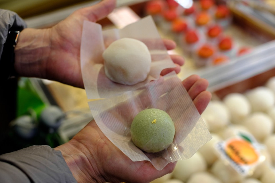Mochi: Loại bánh nổi tiếng này của Nhật được bán rất nhiều ở Kyoto, với lớp vỏ mềm dai và phần nhân ngọt ngào. Ngoài nhân đậu đỏ, du khách có thể thử vô vàn loại mochi, từ nhân trà xanh tới đậu trắng hay nhân kem. Ảnh: Scottandkaren.