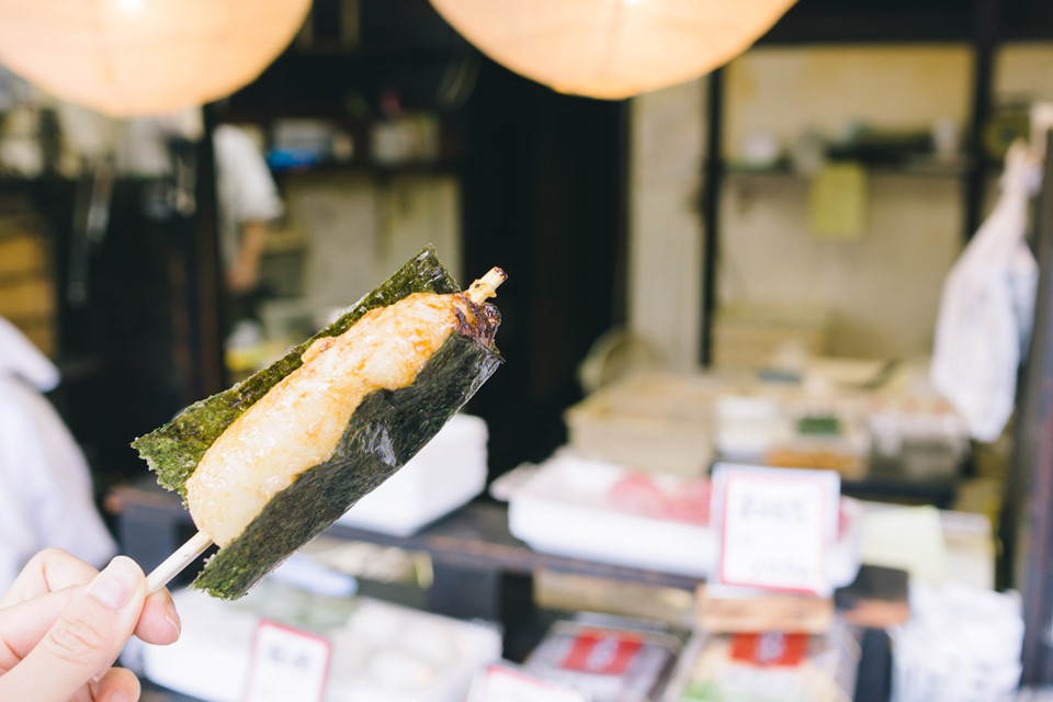 Isobeyaki: Đây là phiên bản nướng của mochi mà không có nhân bánh bên trong. Bánh được nướng trên than hoa, sau đó bọc trong lá rong biển và rưới chút xì dầu, ăn ngay khi còn đang nóng hổi. Bánh gạo dai mềm nướng thơm phức, kết hợp với rong biển và xì dầu tạo ra hương vị hấp dẫn. Ảnh: That Food Cray.