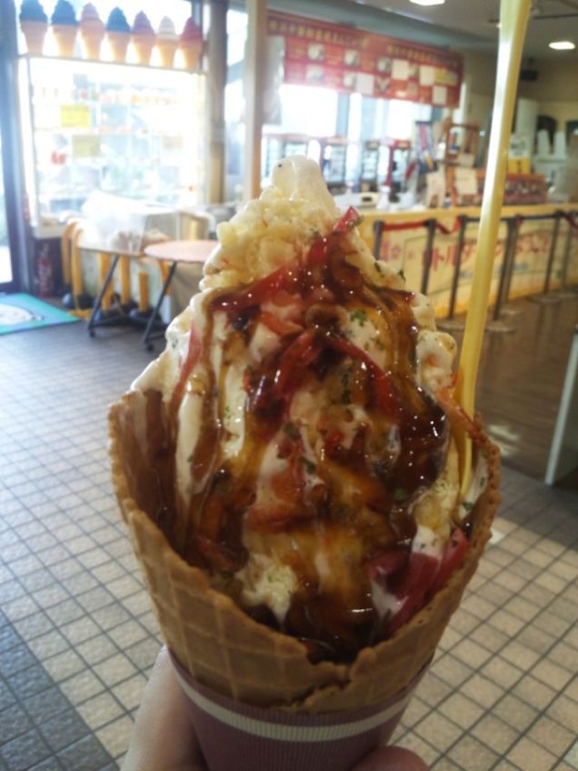 Tuy nhiên, chắc chắn là dù bạn ở đâu trên nước Nhật, bạn sẽ tìm được món hàu chiên khắp mọi nơi, kể cả trên món kem của bạn. (Loại sốt bạn thấy trên ảnh không phải là sốt socola mà là xì dầu).