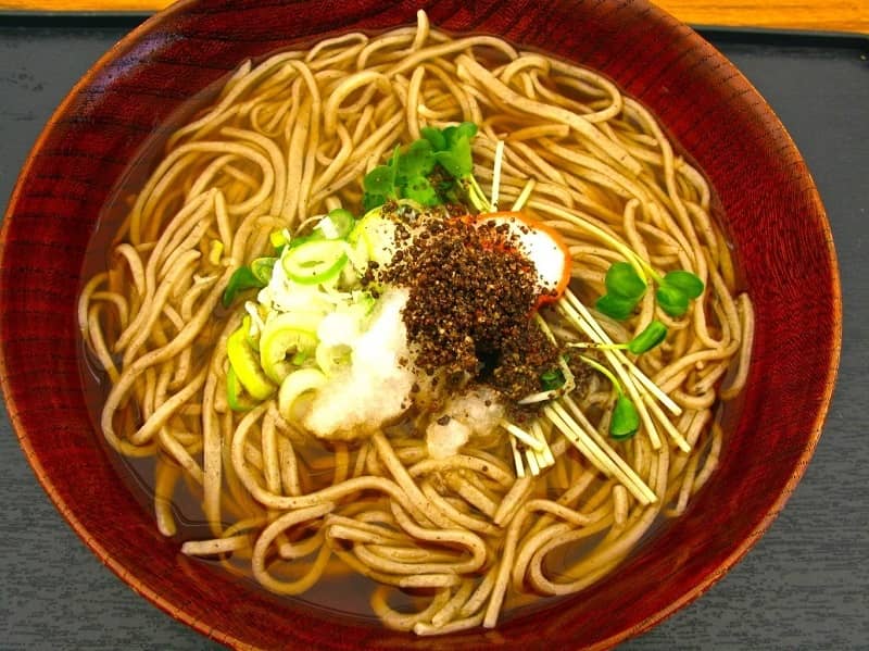 Món mì Soba làm từ kiều mạch, là niềm tự hào của tỉnh Nagano. Tại thành phố lâu đài cổ hấp dẫn của Matsumoto có một số địa điểm thưởng thức nổi tiếng như Nomugi, nơi làm mì bằng tay lâu đời và danh tiếng mở cửa đến 2h chiều hàng ngày được nhiều khách hàng xếp hàng từ sớm mua.