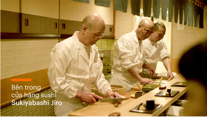 Bên trong cửa hàng sushi Sukiyabashi Jiro