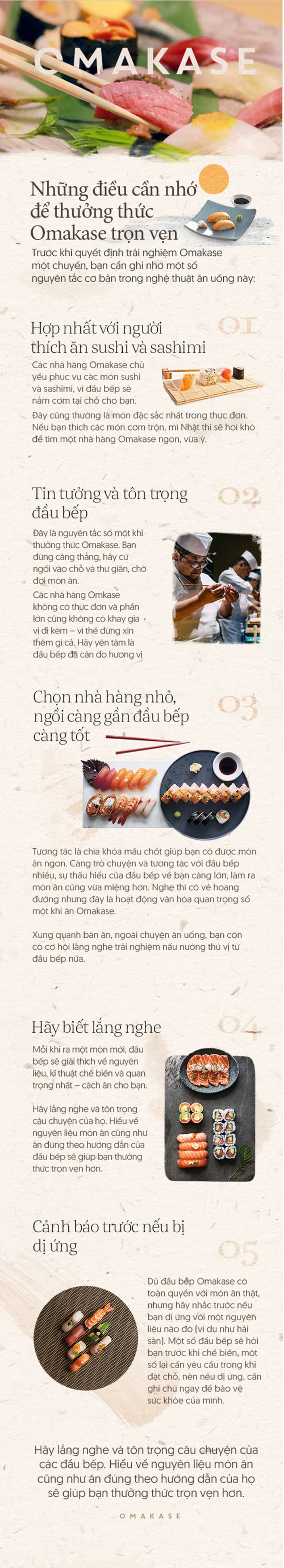 "Chuyến tàu cao tốc" này cũng đầy mạo hiểm, vì không phải lúc nào bạn cũng ăn được một bữa Omakase phù hợp.