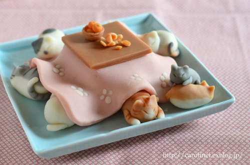 Kẹo mèo lười ngủ dưới chăn. Trừ chiếc khay đựng, mọi thứ nhỏ xinh đáng yêu này đều ăn được.